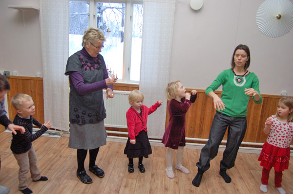 Röstebilder 2011 – Julgransplundring i Dönjegården Foto: Pär Nordqvist DANSEN KRING GRANEN 7. Musikanterna från Skaraborg spelar. Från vänster Solveig Andersson, Bodil Åsberg, Jill Åsberg, Lisa Fürst och Vera Fürst.