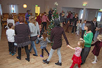 Årets julgransplundring i Dönjegården hade besök av ett 30-tal barn och vuxna som dansade, lekte, fick påhälsning av tomten och fikade. Här är bilderna!