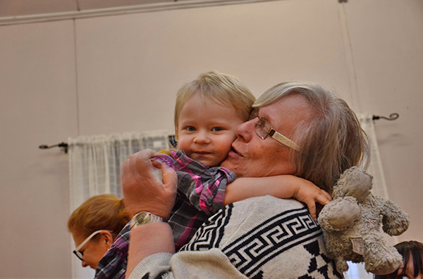 Åse Järpenge gosar med barnbarnet Julia, snart 2.