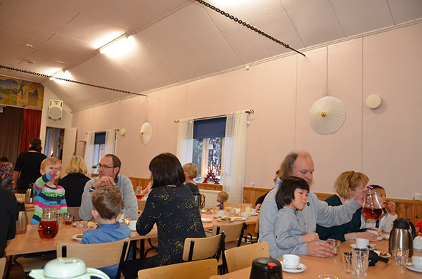 Här är några pappor som fikar med sina barn. Närmast kameran Joakim Stigsvala med sonen Olle.