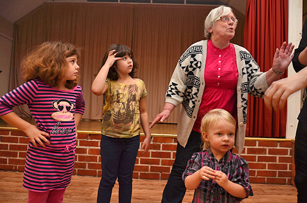 Röstebilder 2014 – Julgransplundring i Dönjegården Foto: Pär Nordqvist ’’JO, DET ÄR SÅ ATT...’’ Ett kort avbrott då Åse Järpenge har något att säga. Framför henne barnbarnet Julia och hennes kusiner Agnes och Alice.