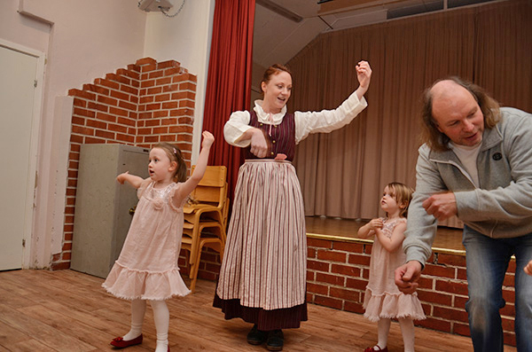 Röstebilder 2014 – Julgransplundring i Dönjegården Foto: Pär Nordqvist ’’VI ÄRO MUSIKANTER...’’ Här spelar lekledaren Pernilla med döttrarna Meja och Siri samt Joakim Stigsvala fioliolej, basfiol och flöjt.