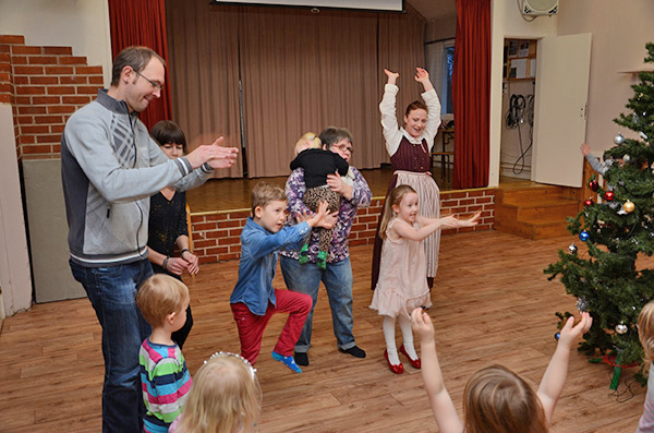 Röstebilder 2014 – Julgransplundring i Dönjegården Foto: Pär Nordqvist RAKETEN STICKER IVÄG. Innan tomten delar ut det han har med sig, skjuts raketen upp. Det hade missats om inte tomten påmint barnen.