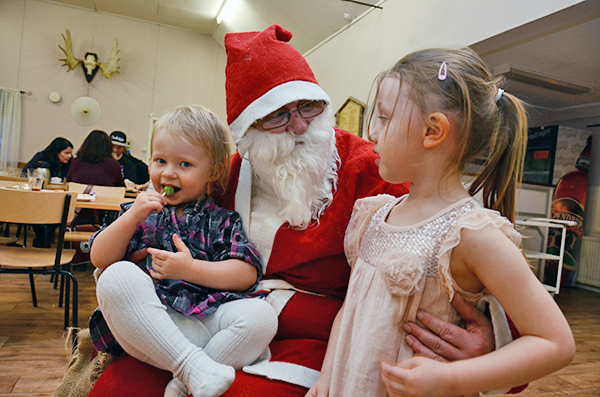 Det är inte bara Julia som vill umgås med tomten. Meja kommer också och pratar lite.