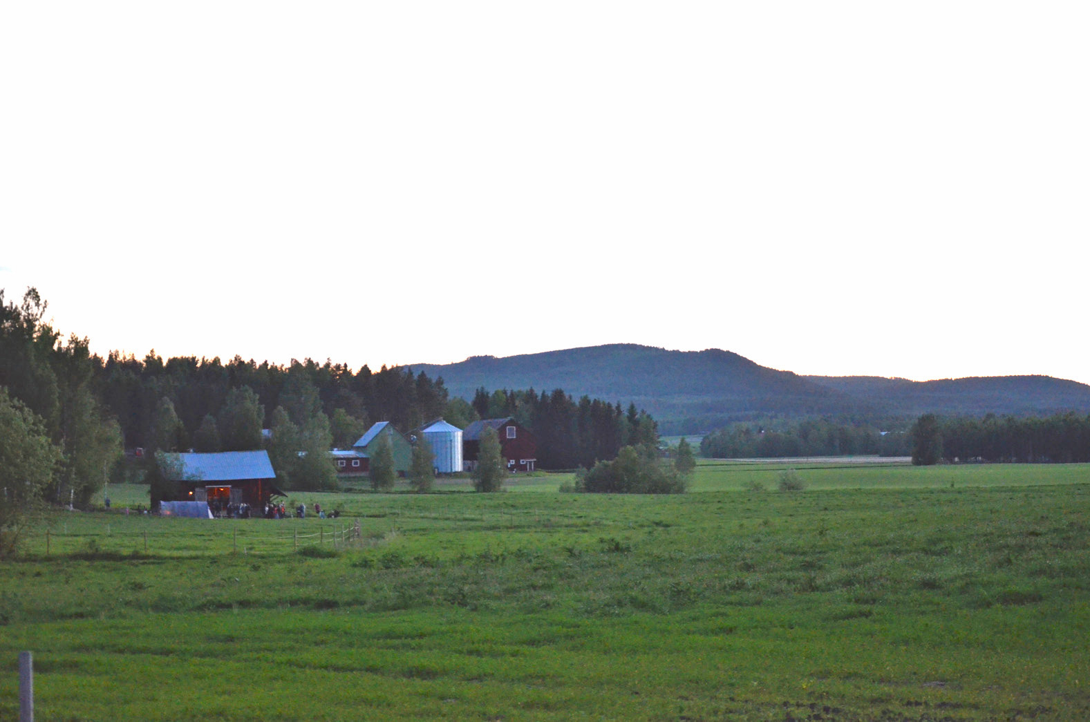 Ängarna breder ut sig. Längst bort Dahlins jordbruk. Farmorsladan är fortfarande vaken...