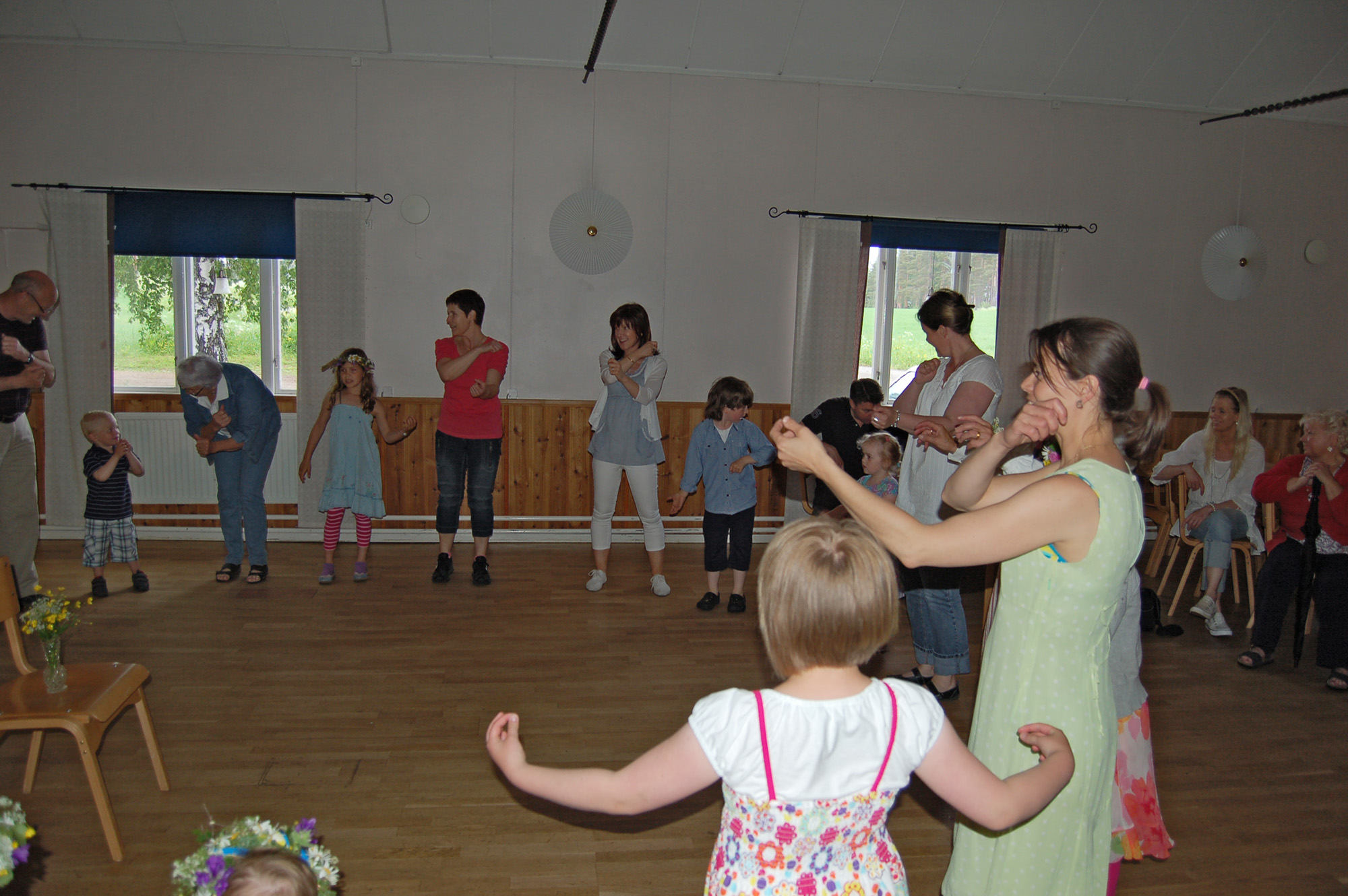 Reget öser ner ute så dansen fick flytta in. Här spelas det i Vi äro musikanter.