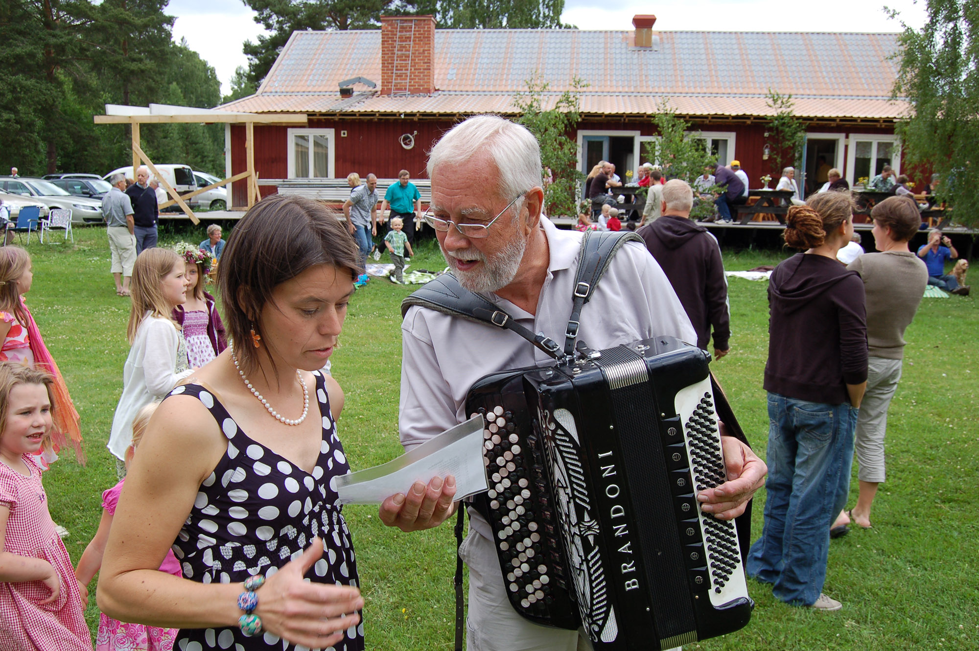 Röstebilder 2011 – Många firade midsommar i Röste Foto: Pär Nordqvist PLANERAR KOMMANDE LEKAR. Lisa Fürst och Sven-Olof Bohlins pratar ihop sig om vilka lekar som ska tas med kring stången.