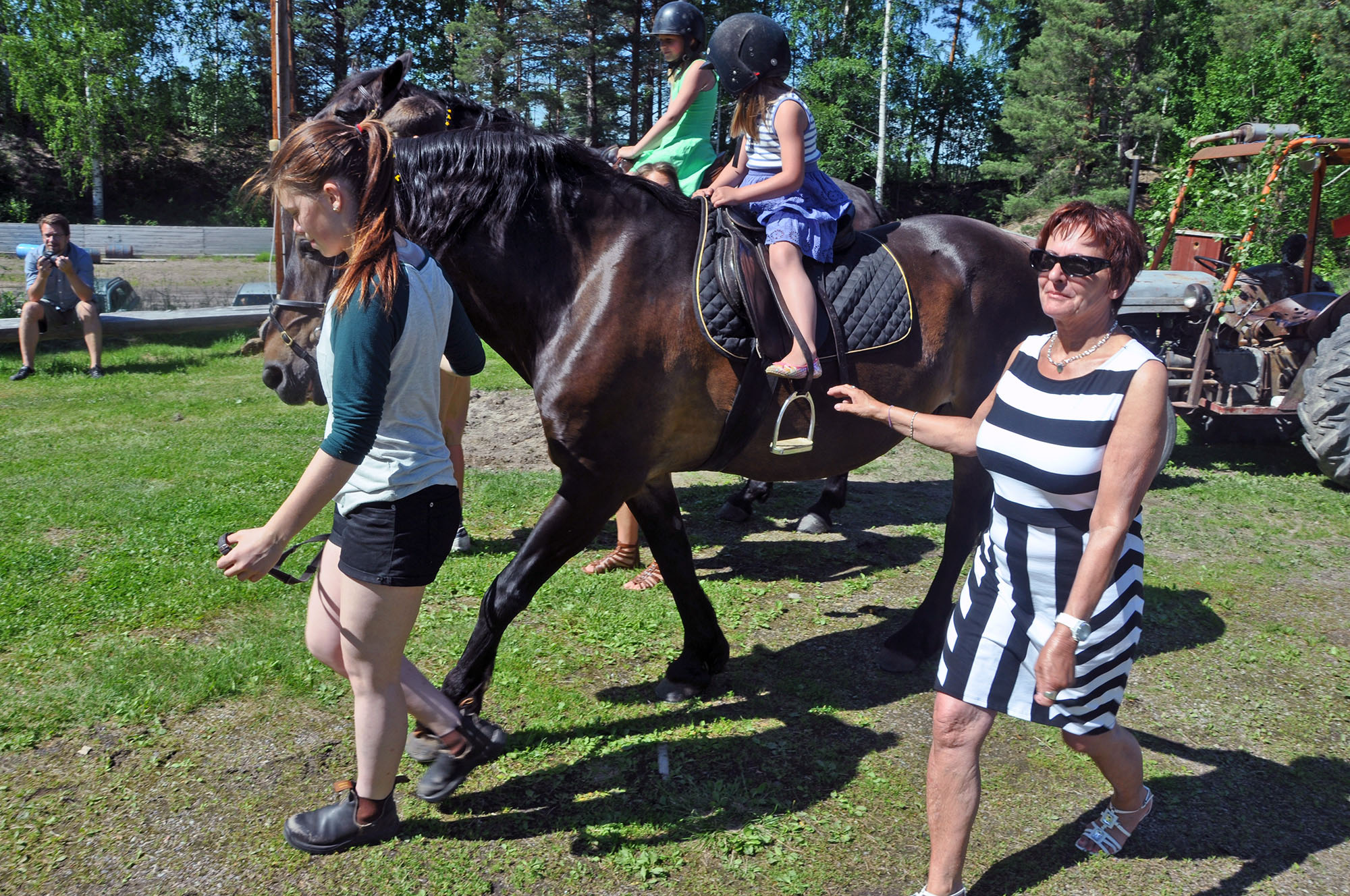 Solveig Bolinder och Linnéa Tegnér håller ett öga på både hästar och barn.