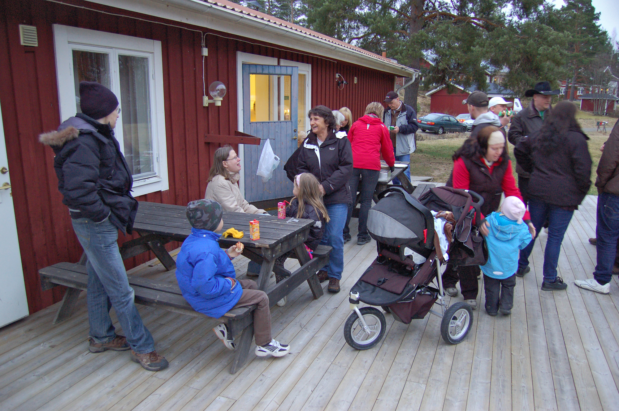 Det såldes varmkorv på altanen och flera passade på att köpa.