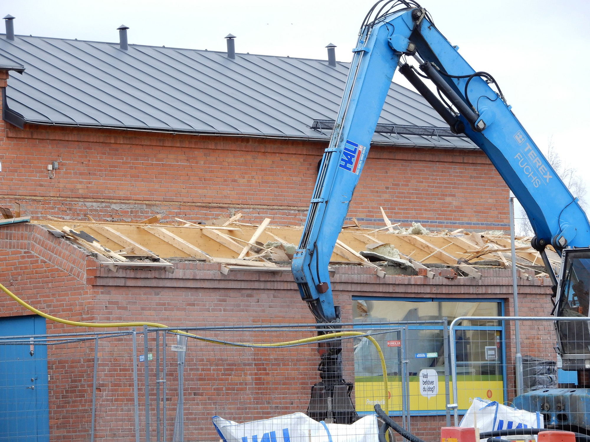 Första svenska dödsfallet i Corona-viruset Man i övre 70-årsåldern avliden • Smittades i Sverige Andra Coronadöds-fallet i Sverige 85-årig kvinna med bakomliggande sjukdomar har avlidit på sjukhus i Göteborg Tredje konstaterade Coronafallet i Gävle-borg ’’Har mild sjukdom’’ • Smittades i norra Italien •s Sitter i hemmakarantän Corona slår hårt mot bandyslutspelet Folksamlingar med fler än 500 personer förbjöds på onsdagen • ’’Ekonomiskt är det en rak höger’’ En person död efter lägenhetsbrand i Bollnäs Oklart varför en lägenhet på Gärdet började brinna tidigt på onsdagsmorgonen ![]() Foto: Pär Nordqvist, 2020. Kamera: Nikon Coolpix A900. Här rivs delar av järnvägsstationen Ny byggnad ska uppföras intill den nuvarande vänthallen • Pressbyrån får nya lokaler ![]() FRISKT VIRKE. För bra precis 34 år sedan, våren 1986, byggdes järnvägsstationen i Bollnäs. För att vara så länge sedan ser bjälkar och virke friska ut. ![]() ENTRÉ OCH PRESSBYRÅLOKAL. Den del som nu rivits bestod av entré mot Järnvägsgatan samt lokal för Pressbyrån. ![]() ÅTERVINNNG. Friska takstolar tas om hand av lyftkran. ![]() JÄRNVÄGSSTATIONEN I BOLLNÄS 12 MARS 2020. ![]() BARA PAPPERSKORGEN KVAR. Här är det som är kvar av norra väggen vid entrén. Papperskorgen sjunger definitivt på sista versen. ![]() NYBYGGE PÅ GÅNG. Här ska en ny byggnad uppföras med nya fräscha lokaler för bland annat Pressbyrån. ![]() Foto: Pär Nordqvist, 2020. Kamera: Nikon Coolpix A900. Här byggs nytt resecenter i Bollnäs BOLLÄS 17 mars 2020 Så här såg det ut på Bollnäs största byggarbetsplats i tisdags. Taket på den nya dockningsstationen för bussar läggs. Fjärrvärme dras fram till området. Allt ska klart för invigning den 15 december enligt planen.