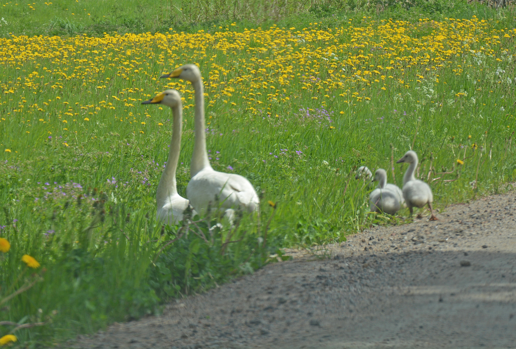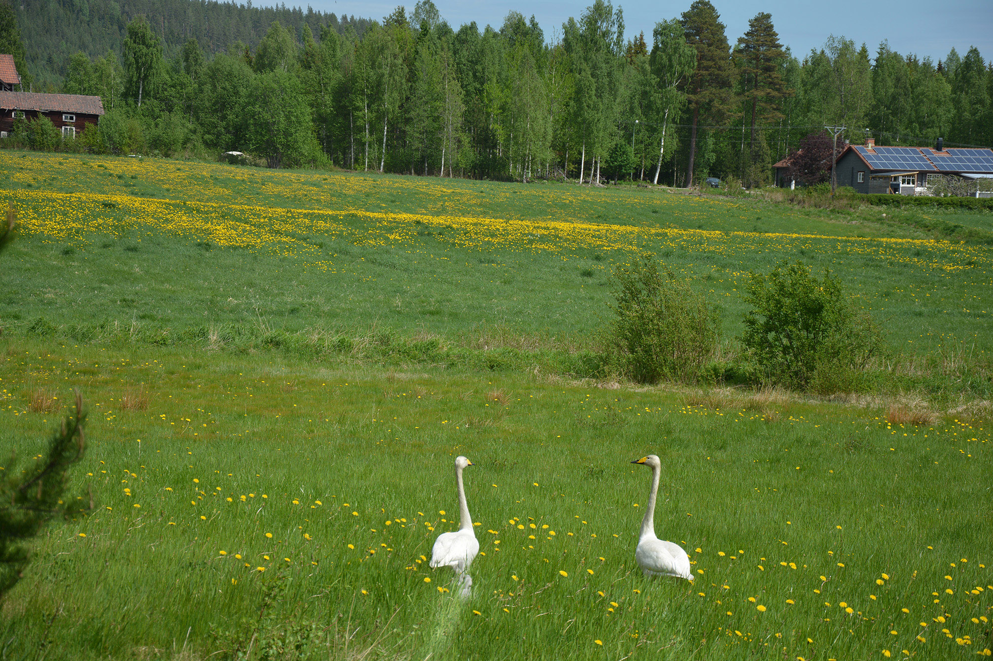 Reserestriktioner hävs inrikes Fritt fram att resa i Sverige fr o m 13 juni • Villkor: vara symptomfri och hålla avstånd Smittspridningen rör sig norrut i länet Kraftig ökning av covid-19 i Hudiksvall • Mäkitalo bekymrad ![]() Foto: Pär Nordqvist, 2020. Kamera: Nikon D7100. PÅ UTFLYKT. Mamma, pappa och fyra små dunbollar till ungar har precis korsat Fröstevägen. De är på väg över åkrarna mot Galvån. Sångsvansfamilj på utflykt i Fröste FRÖSTE 5 juni 2020 En familj av arten sångsvan iakttogs längs Fröstevägen på fredagsförmiddagen. Två vuxna svanar och fyra små ungar korsade grusvägen och fortsatte ner i diket och sedan ut på höåkern. De funderade säkert på vad det var för något som stannade och tittade på dem och dessutom tog bilder. En av dem gick i försvarsställning med vingarna. Hade man stigt ur bilen har de troligen attackerat så därför satt jag snällt kvar. Beklagar att några av bilderna fick skärpan i bakgrunden i stället för fåglarna, men det var inte mitt fel, det var kamerans. ![]() ’’VILLE NI NÅ’T?’’ Svanarna vänder sig mot oss. ![]() LÅNGA OCH STÅTLGA. Mamma och pappa Svan. ![]() PÅ RAD. Klassisk bild med fågelungar som följer efter på rad. ![]() SÅNGSVANSFAMILJ PÅ UTFLYKT I FRÖSTE, 5 juni 2020. ![]() SÅNGSVANSFAMILJ PÅ UTFLYKT I FRÖSTE, 5 juni 2020. ![]() SÅNGSVANSFAMILJ PÅ UTFLYKT I FRÖSTE, 5 juni 2020. ![]() HANS-NILS I SOMMARGRÖNSKAN. Ett stenkast från svanarna ligger Hans-Nils gård, som nu mer eller mindre bäddats in i sommargrönskan.