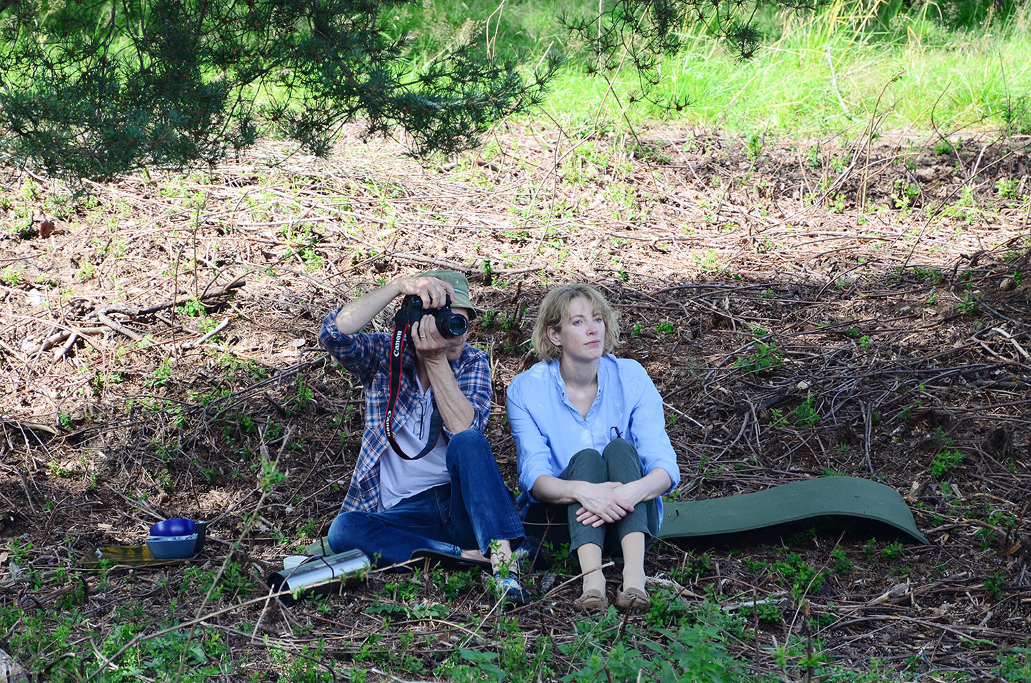 Lars Åsberg fotar. Intill sitter hustrun Katarina.