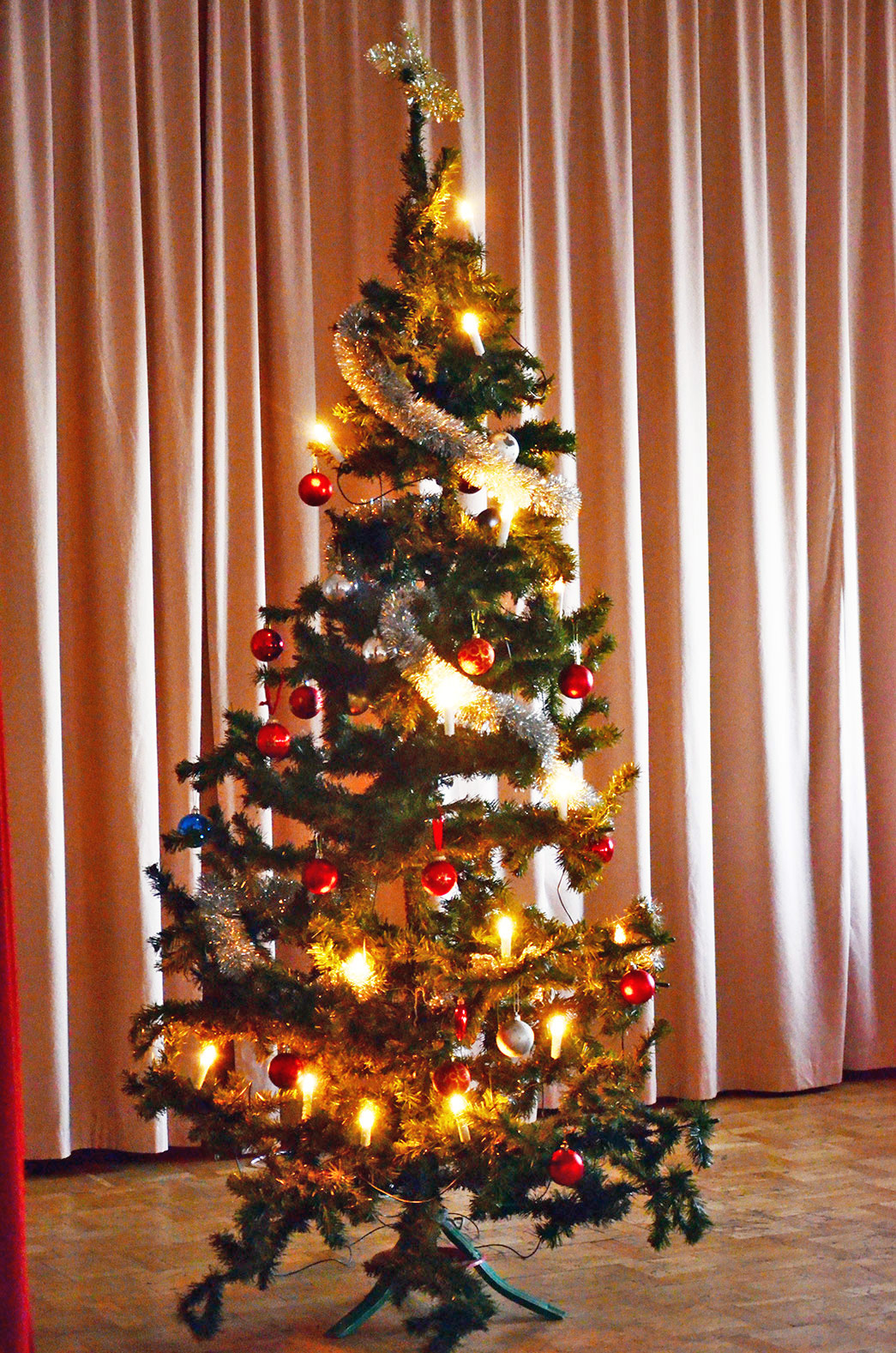 Röstebilder 2015 – Grötfest med luciafirande i DönjegårdenFoto: Pär Nordqvist JULGRAN SPRED LJUS FRÅN SCENEN. Trots det vårlika vädret utanför infann sig julstämningen, mycket tack vare den mysiga julgranen.