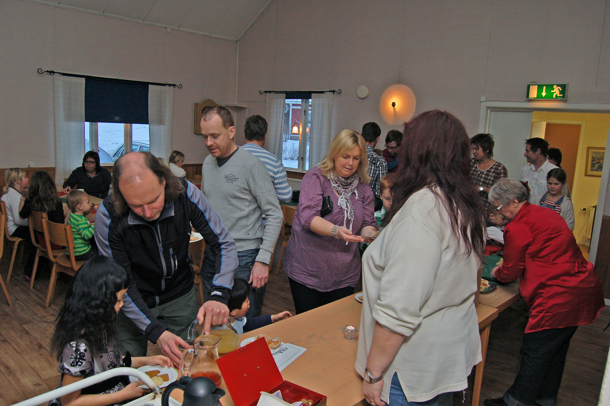 Joakim Stigsvala serverar saft åt dottern Maja. Nina Norell och Åse Järpenge hade fullt upp med att servera och ta betalt.