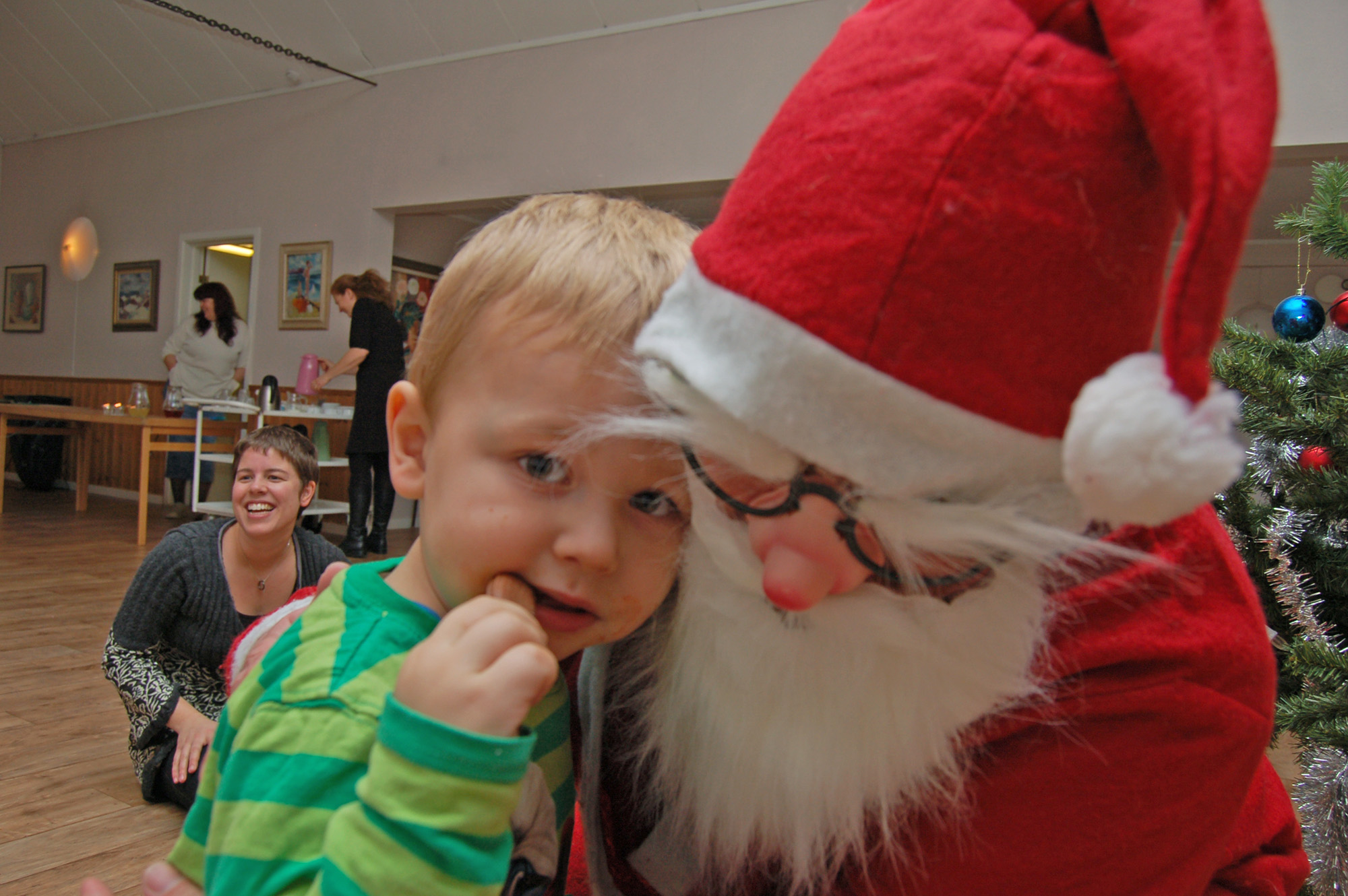 Lille Kevin Nord, 2, ger tomtemor en kram till för att vara på säkra sidan.