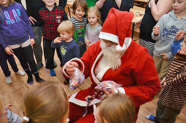 Tomten har öppnat säcken och börjat godisutdelningen.