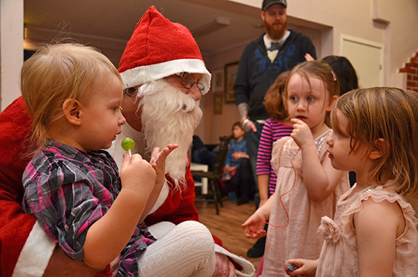 Tomten frågar de andra flickorna om de vill sitta i hans knä, men de avböjer.