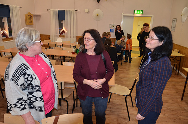 Åse Järpenge, Monica Ekström och Britt-Marie Dahlin har ett litet tjejsnack när festen är över.
