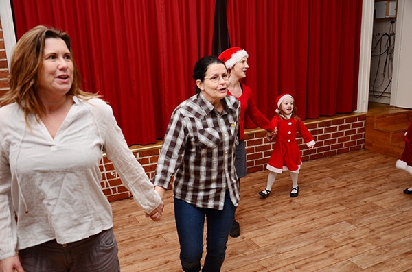 Martina Törnblom och Britt-Marie Dahlin i dansen kring granen.
