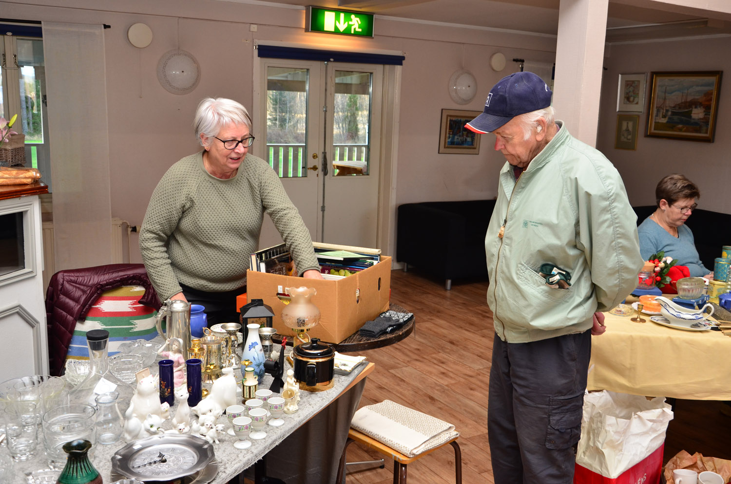 EN AV DAGENS FÅ KUNDER. Einar Zetterlund tittar på utbudet på Ingvor Vestmans bord. Han var en av dagens få kunder.