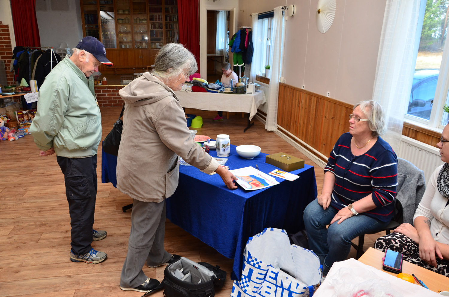 ![]() Röstebilder 2016 – Kulturveckan med loppmarknad i Dönjegården ![]() Foto: Pär Nordqvist, 2016© FÖRSTA KUNDERNA KOMMER. Alice Zetterlund är intresserad av nya Röstealmanackan, som just lämnat labbet. Hon har maken Einar vid sin sida och Åse Järpenge sitter redo vid bordet. |