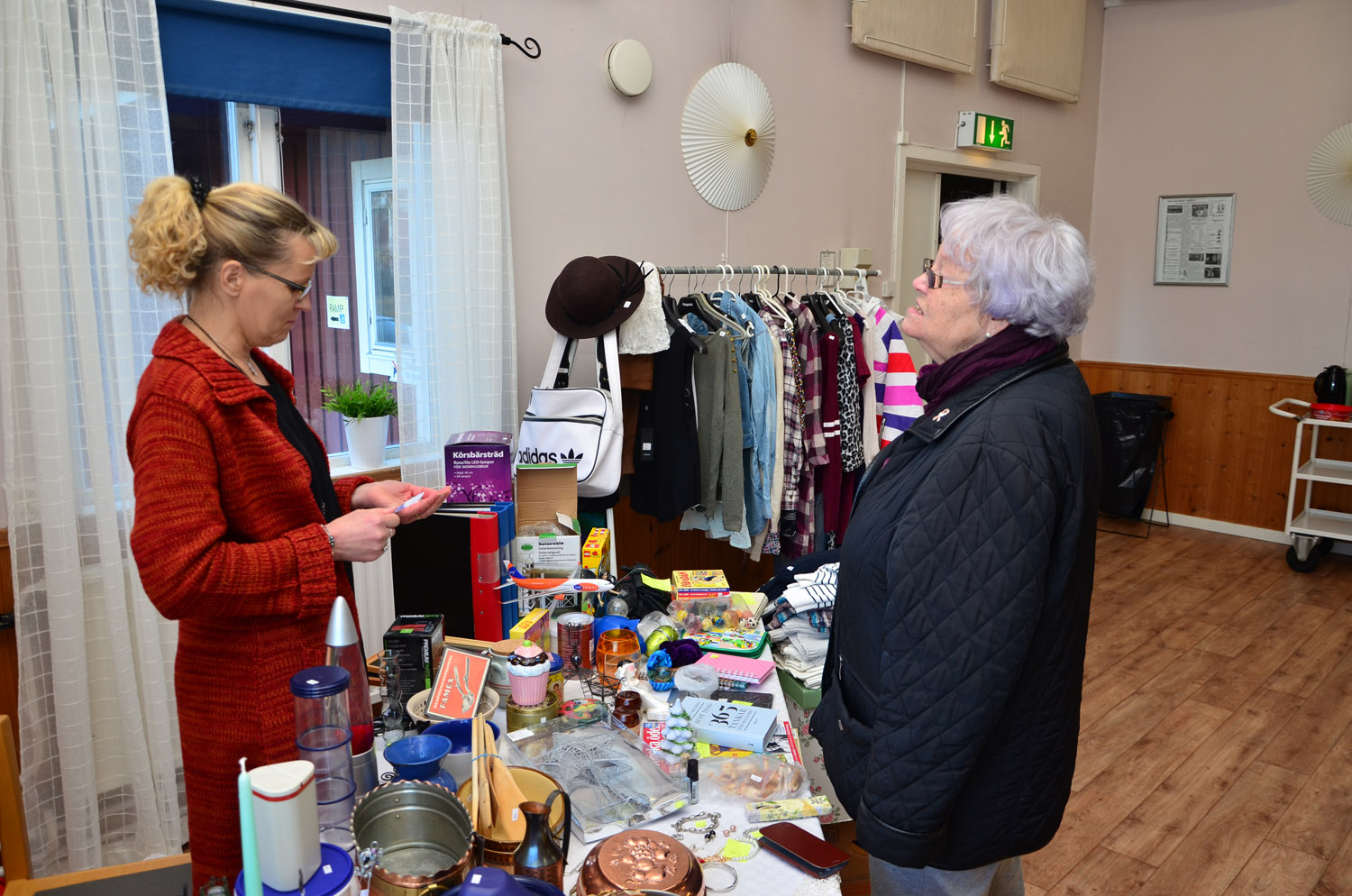 Britt-Marie Bergius pratar med Annika Sonefors. Ska det bli en sista affär innan marknaden stänger?
