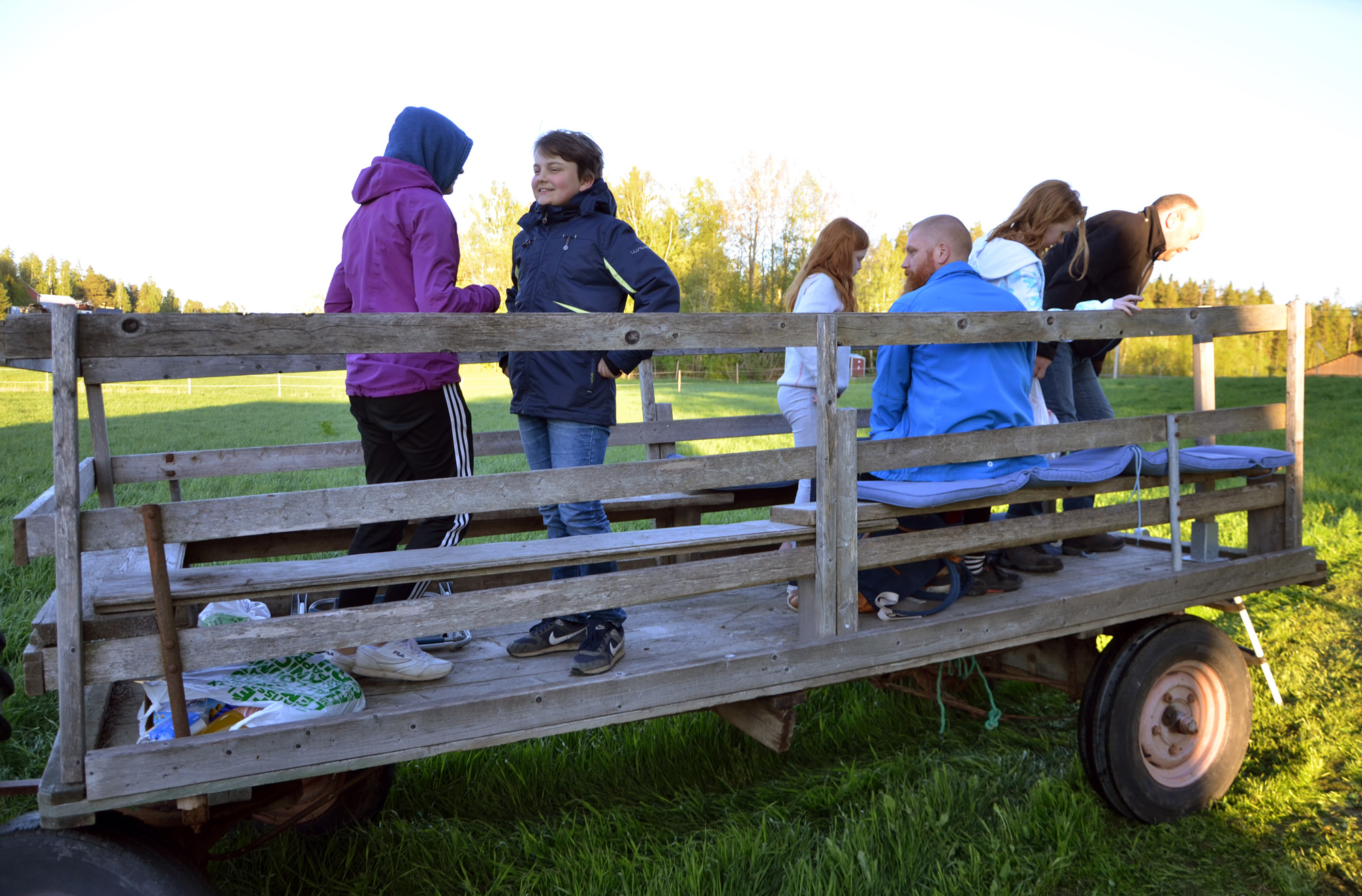 Röstebilder 2019 – Logdans i Farmorsladan Foto: Pär Nordqvist, 2019. Kamera: Nikon D7000. AVSTIGNING. Fripassagerarna kliver av. Nu ska här dansas och festas. Barnen tycker också det ska bli spännande.