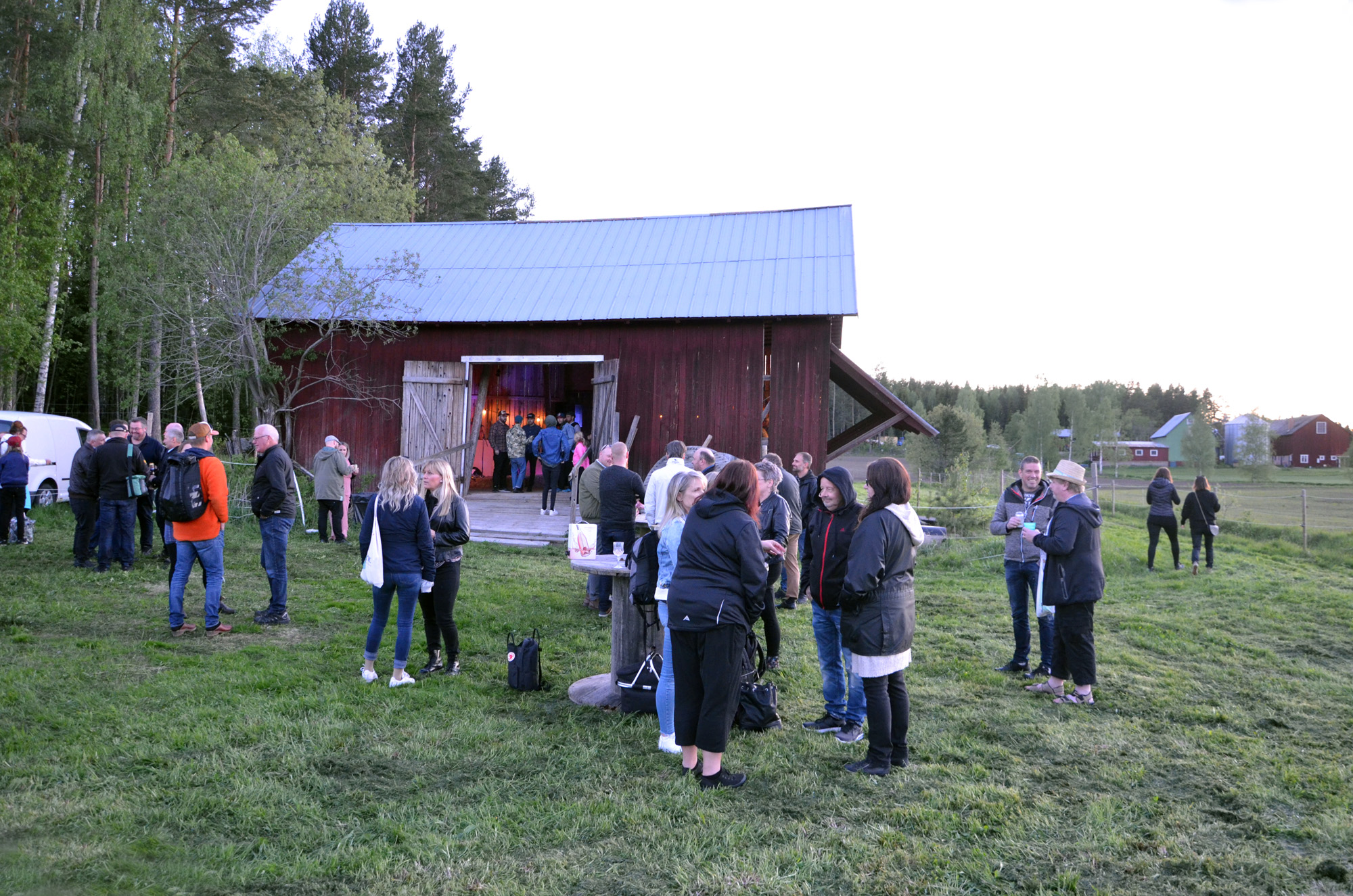 LOGDANS VID FARMORSLADAN I RÖSTE, 31 MAJ 2019. Utanför ladan råder en förväntansfull stämning.