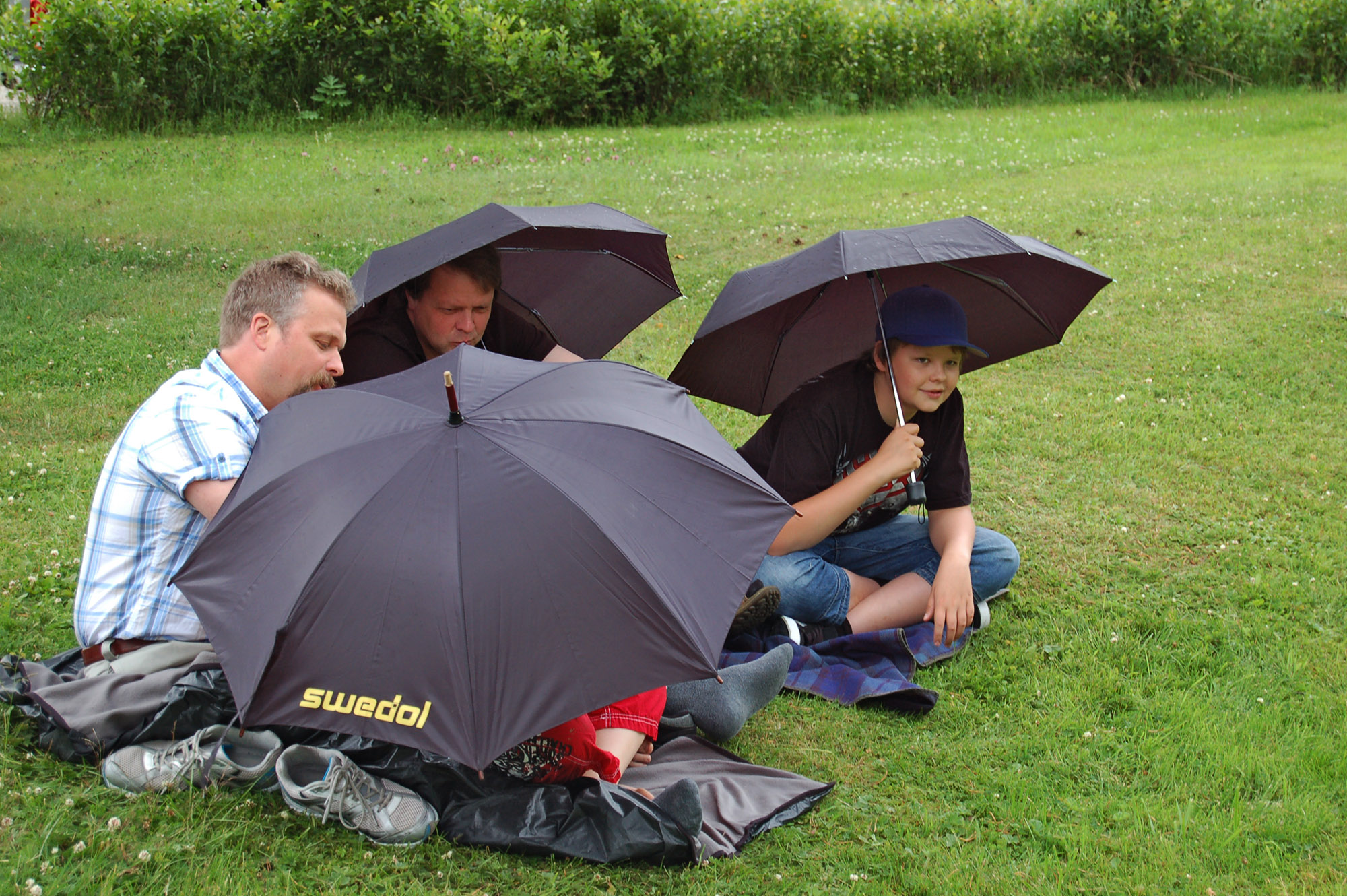 Paraplyerna togs fram. Regnstänk började komma från skyn.