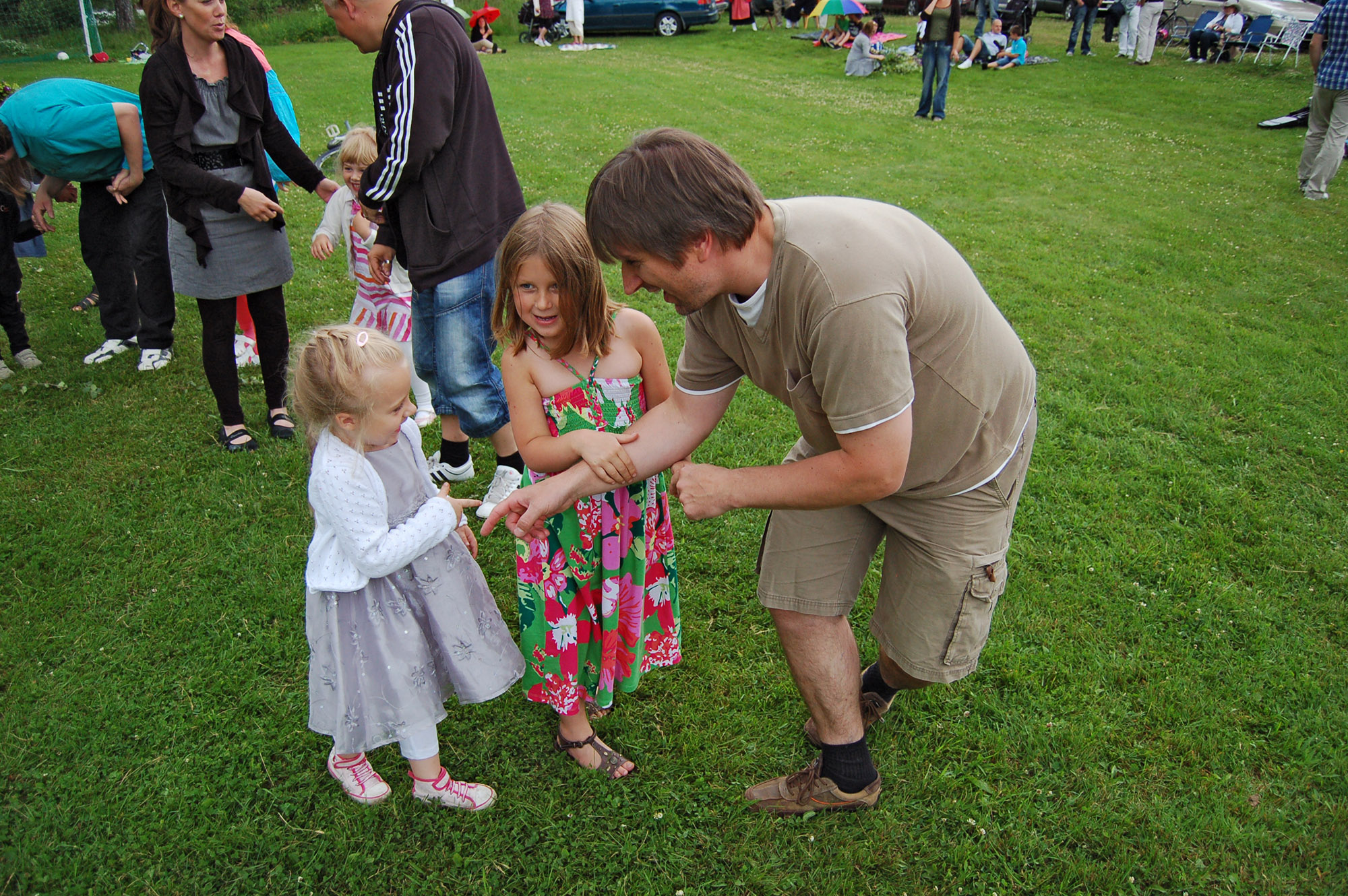 Tomas Frisk deltar i lekarna tillsammans med dottern Merja.