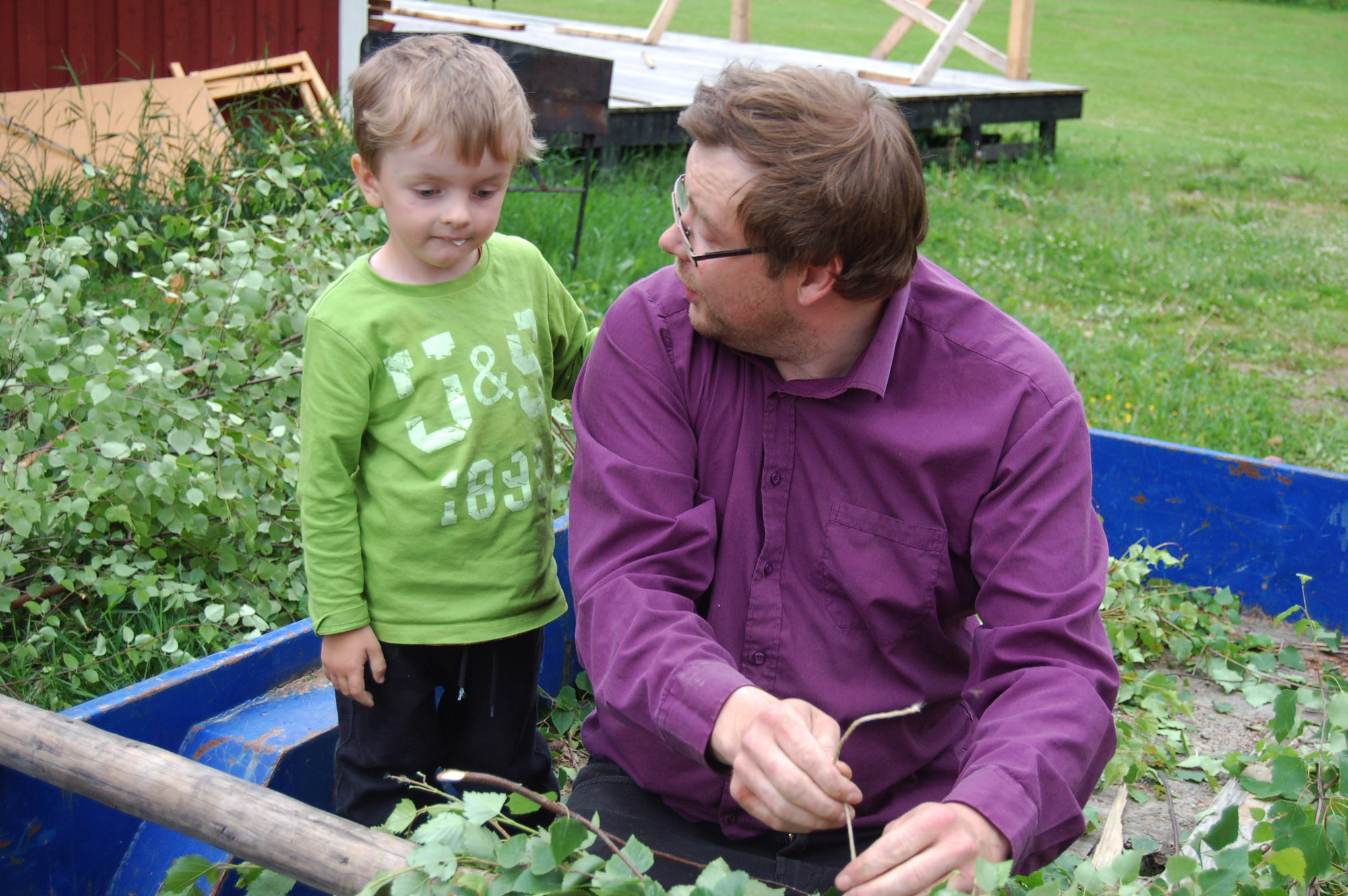 Henrik Olofsson och sonen Nils i samspråk. Hur ska stången kläs bäst?