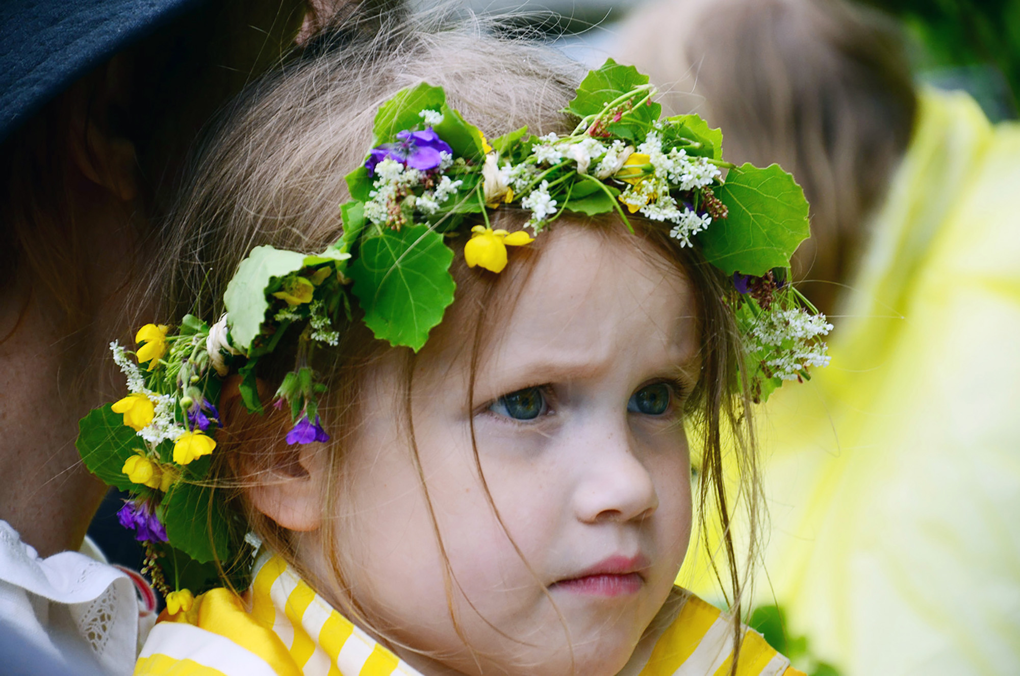 Siri är jättesöt i sin midsommarkrans. Nu blir det roligt om en stund.