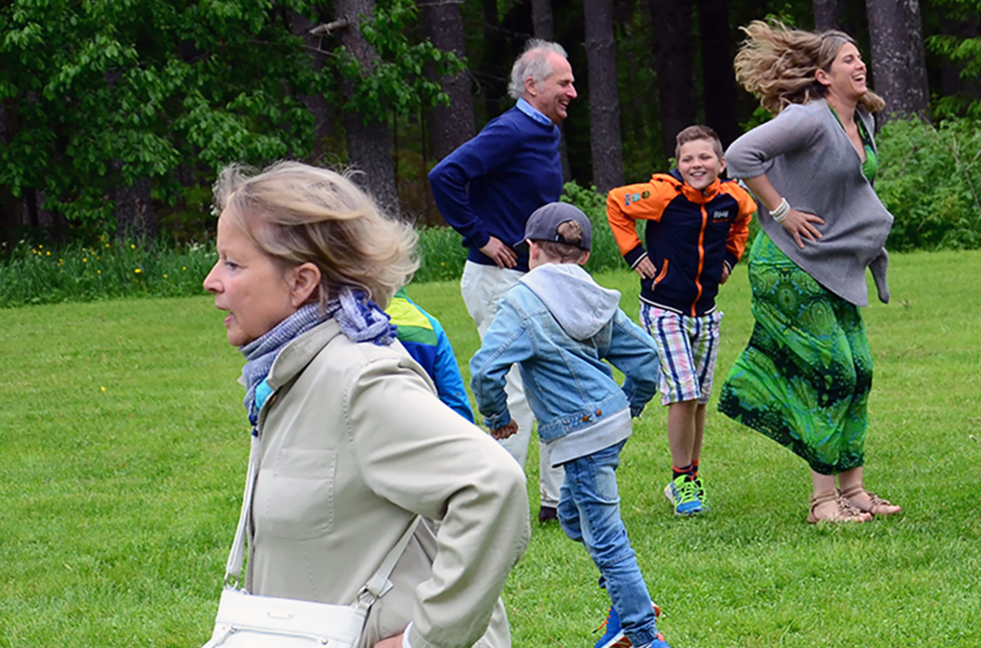 Anita Hagberg, Rolf Hagberg med svärdotter. Barnbarnet Hugo i orangesvart jacka.