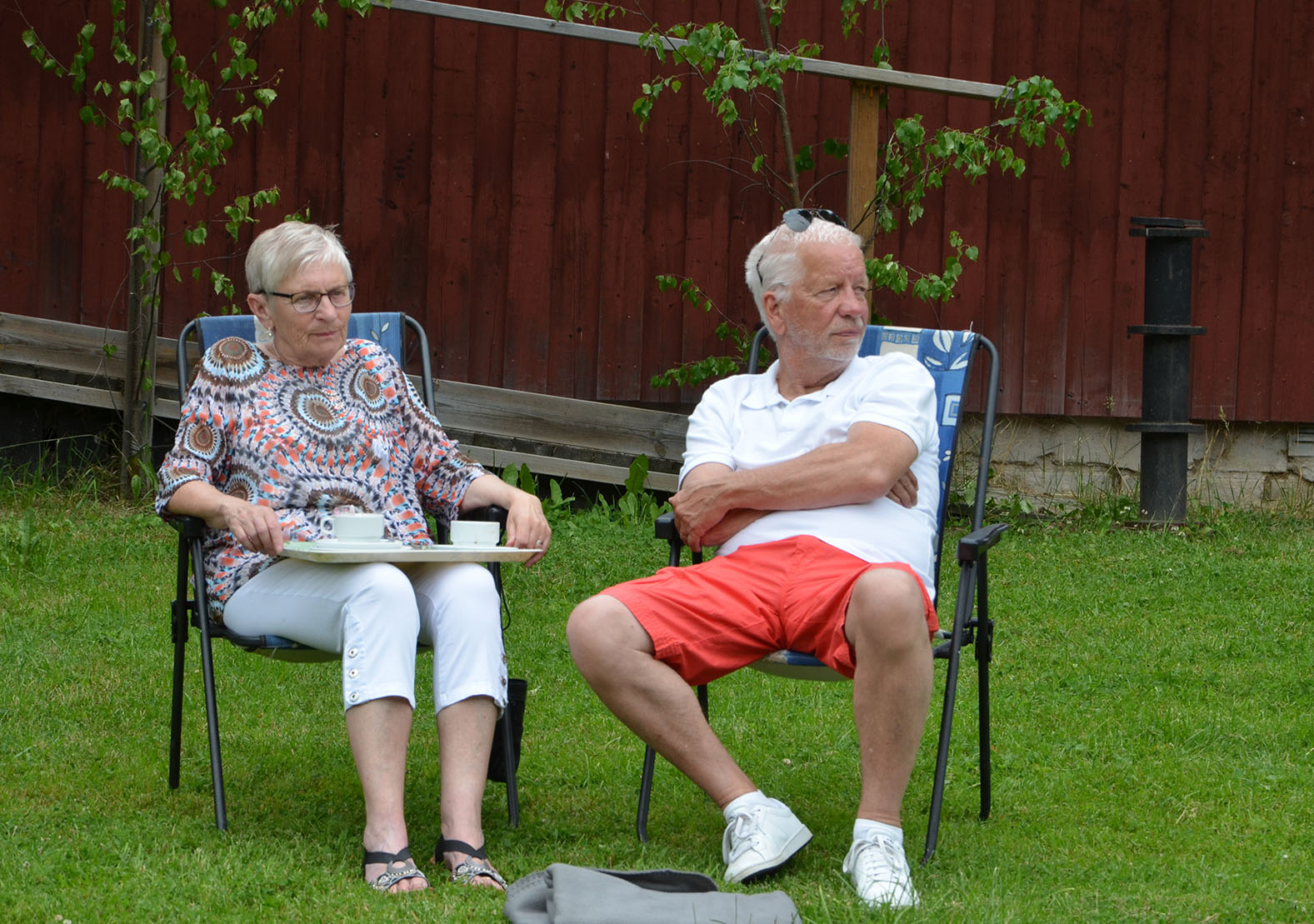 Det här paret ser ut att ha fikat färdigt, men sitter kvar en stund och tittar på folk.