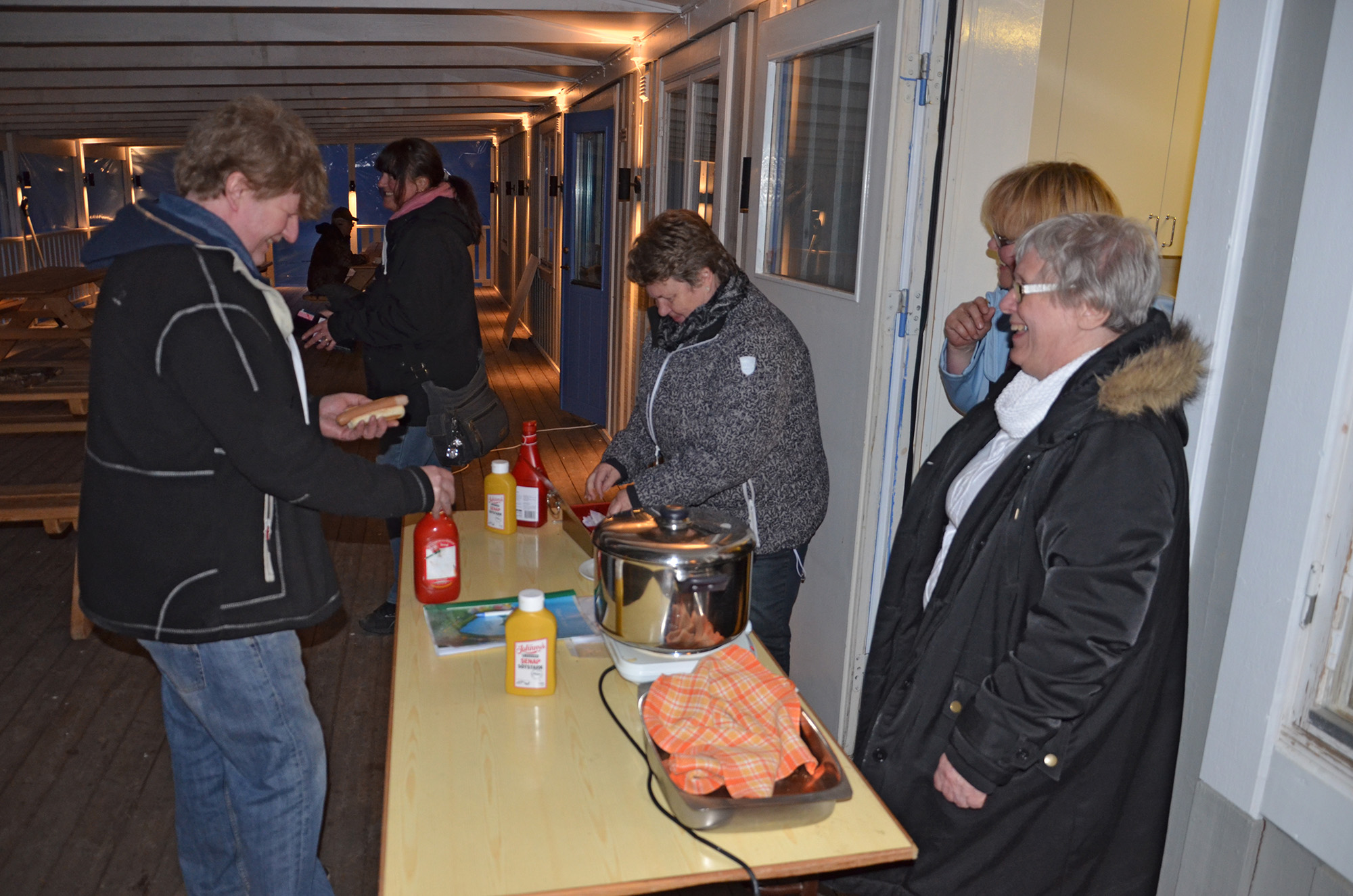 Inger Tällberg, Kerstin Andersson och Åse Järpenge säljer korv till???